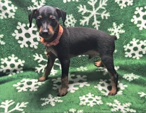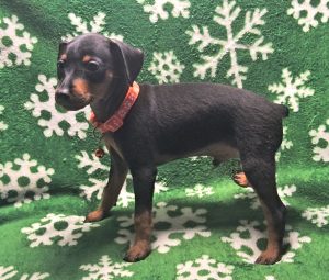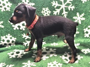Finn is a outgoing and energetic little guy that loves to play. He can be a typical Min Pin and act a tad reserved if he wants to.